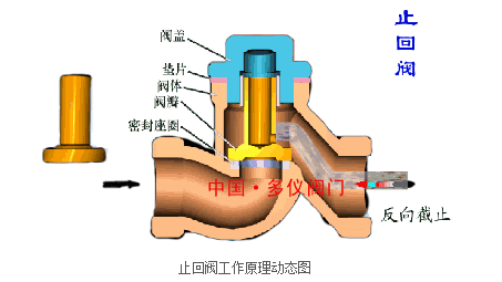 The principle of the check valve is very simple. As shown in the picture, the medium flows in a specified direction. When the flow pressure exceeds the opening pressure of the check valve, the disc is opened under the action of the fluid pressure, thus connecting the circulation of the pipe medium. Conversely, when the pipeline media backflows, the valve is pressed on the check valve body under the push of the fluid pressure, and the valve is closed, thus cutting off the pipeline medium circulation. And the greater the pressure of the reflux medium, the tighter the valve's valve closes, the better the sealing effect is, and the possibility of the reflux of the medium is completely eliminated.